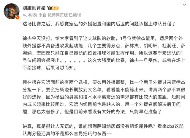 媒体人:徐杰受伤下场广东1号位就无人可用,国内后卫线是软肋
