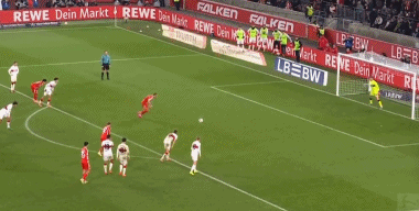 凯恩远射进球飞行速度达到128km/h,为本赛季德甲最快进球